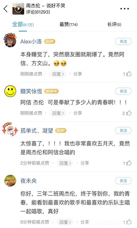 这首《说好不哭》制作之精良、用心之细腻简直超乎想象~万千杰迷涌入,直接刷爆酷狗评论区,评论飞速冲破6万+。杰伦在新歌中还将四重惊喜(彩蛋)安排得明明白白,真的太走心了!
