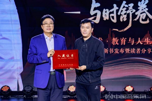 随后,“致敬与祝福”环节迎来了又一庄严时刻。中国现代文学馆征集编目部慕津锋主任登台,郑重为李罡教授颁授了馆藏证书。这一仪式标志着《艺术·教育与人生》这部心血之作被国家级的文学殿堂——中国现代文学馆、中国国家图书馆永久收藏,正式成为当代中国文学记忆的一部分。慕津锋主任在讲话中高度评价了该书的文学与史料价值,为其文学地位奠定了权威的基石。
