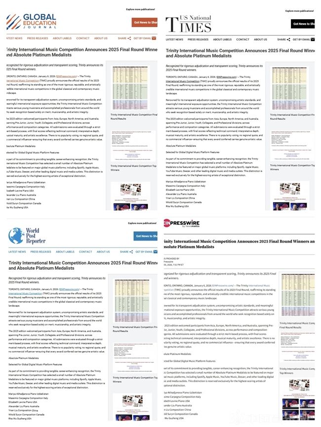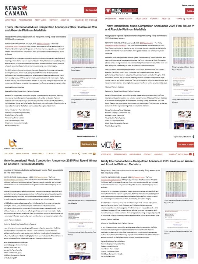 刘怡然的获奖消息被多家国际知名媒体报道,包括《世界音乐杂志》《音乐广播评论》《加拿大新闻》以及《美国时报》等。这些报道强调了比赛的高水准和刘怡然在比赛中展现出的杰出才能。
