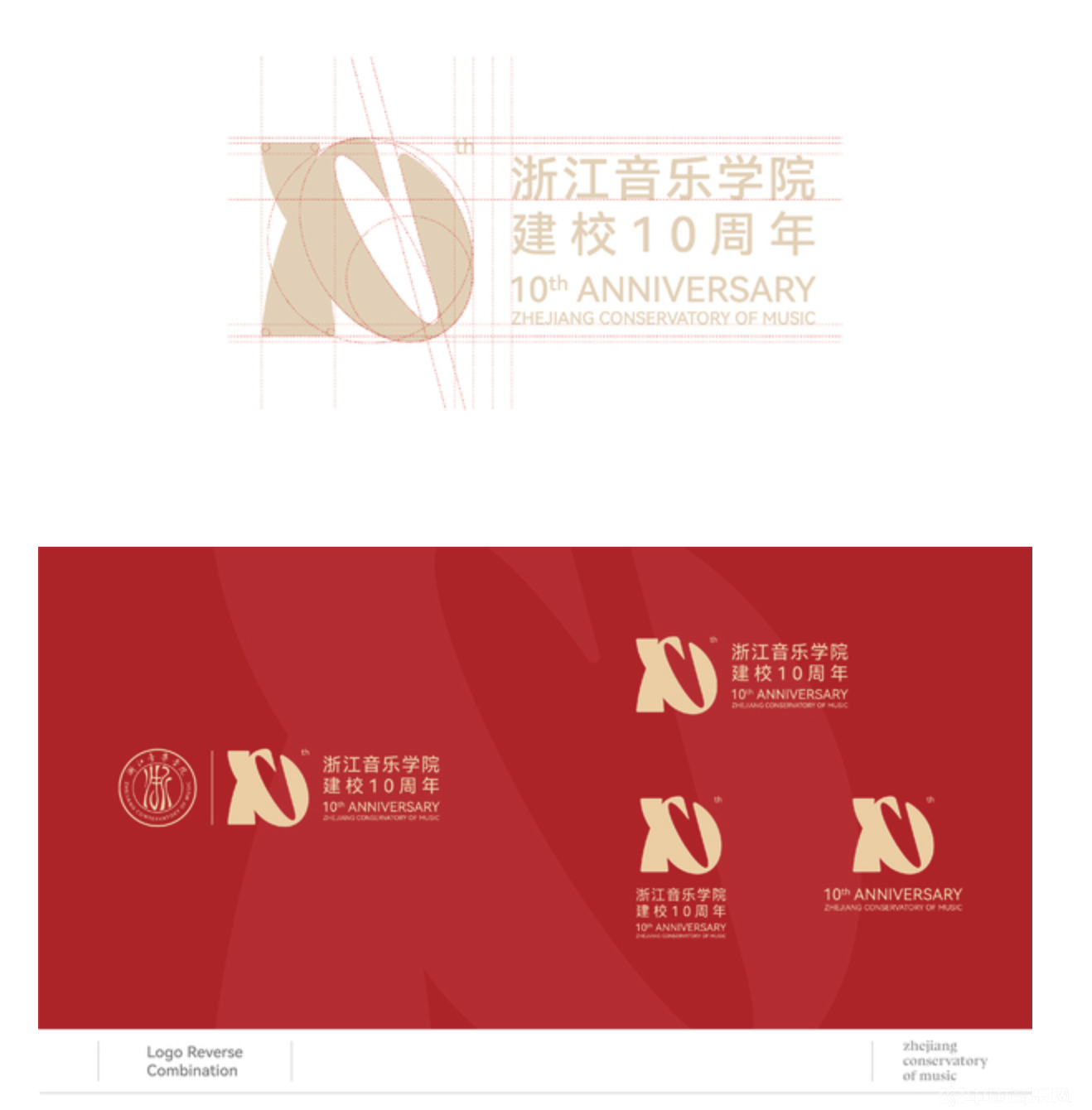 浙江音乐学院10周年校庆标识,以“弦歌十载,尽善致远” 为核心设计理念,将具象符号与数字“10”创意同构,形成独具韵味的视觉形象。