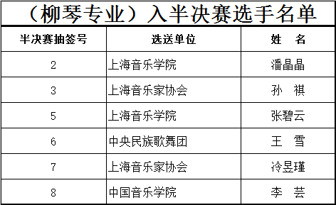 第十届中国音乐金钟奖全国民乐比赛入半决赛选手名单