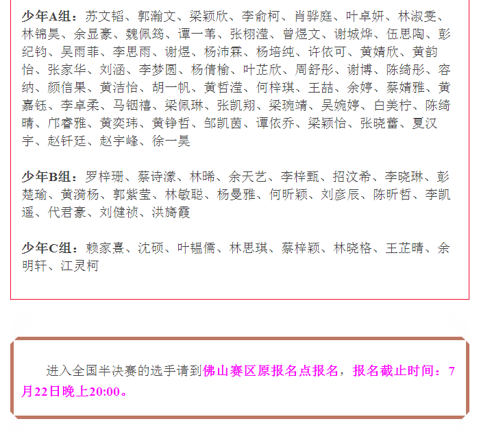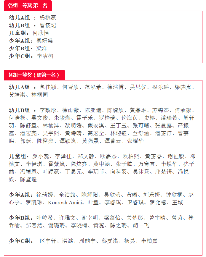 第十届肖邦青少年国际钢琴比赛(业余组)佛山区获奖名单