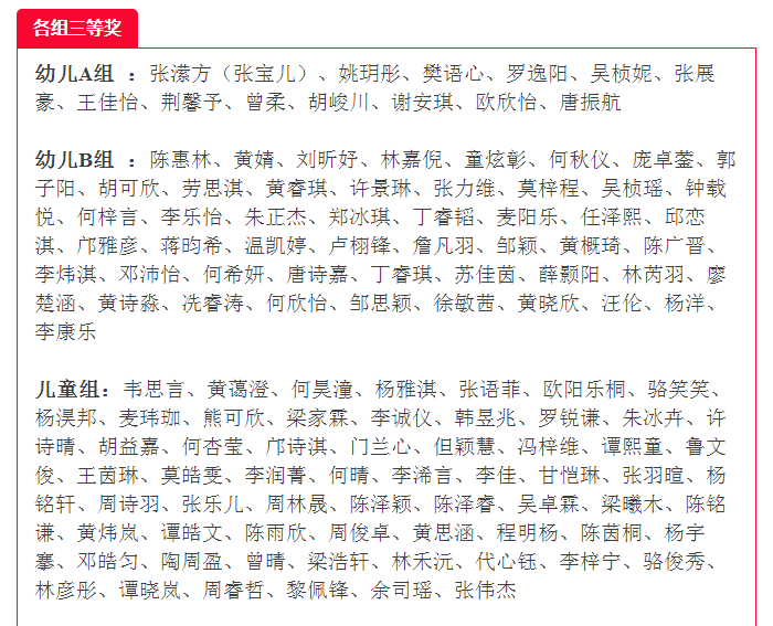 各组一、二、三等奖名单公布如下: