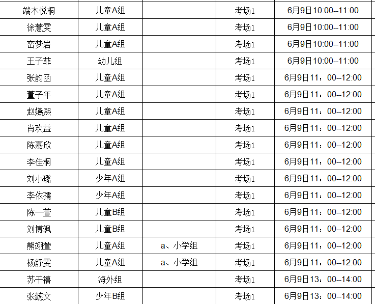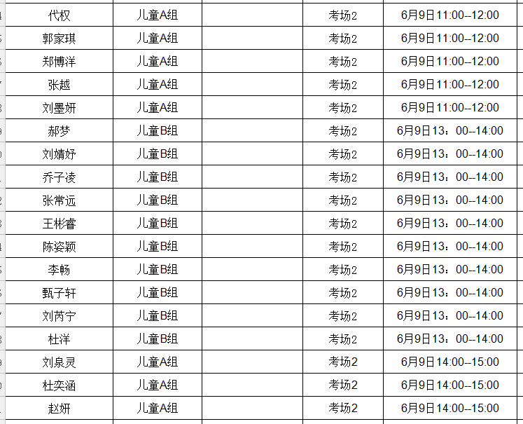 代权 儿童A组 考场2 6月9日11:00--12:00