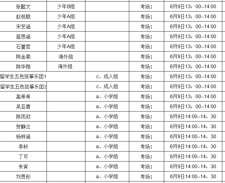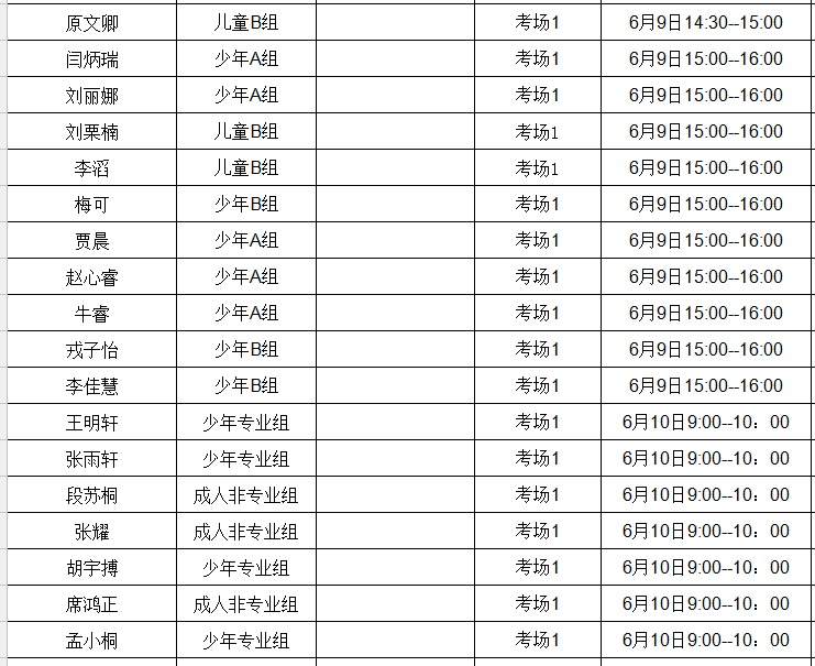 王敏 少年B组 考场2 6月9日14:00--15:00