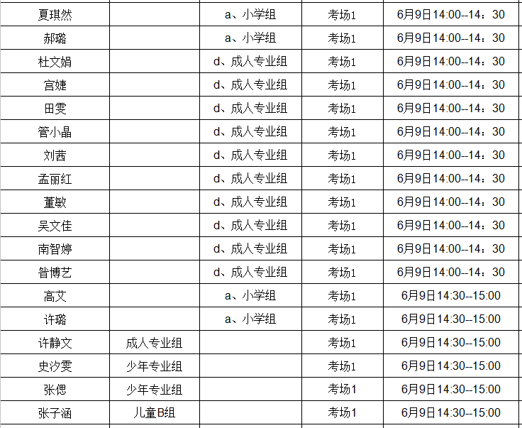 张晓宇 儿童B组 考场2 6月9日15:00--16:00