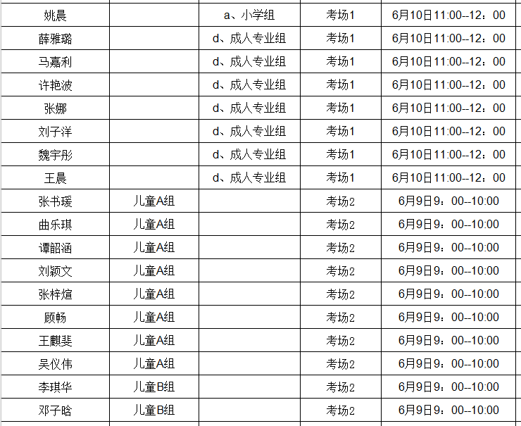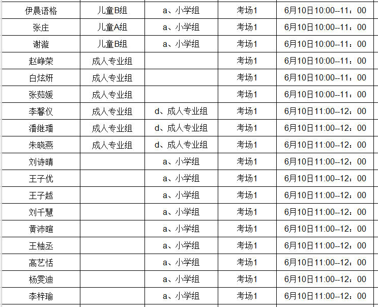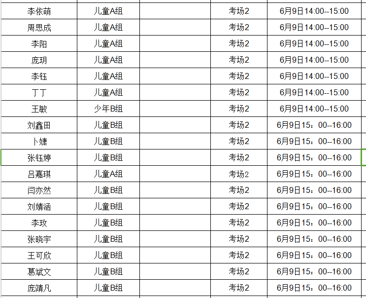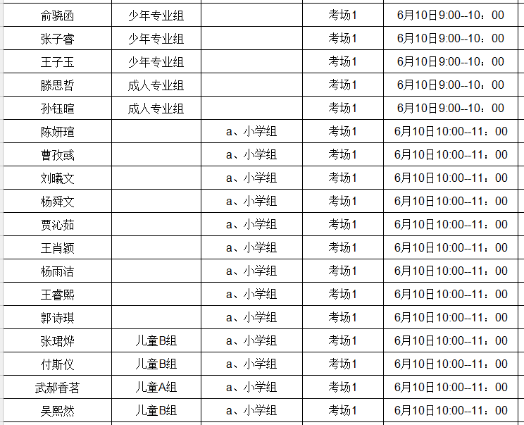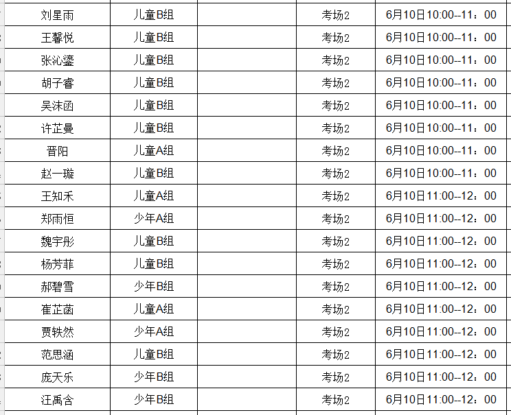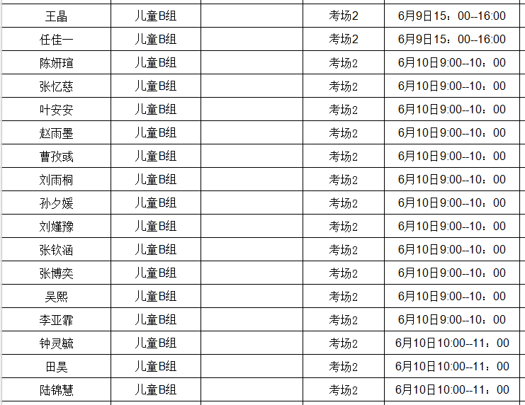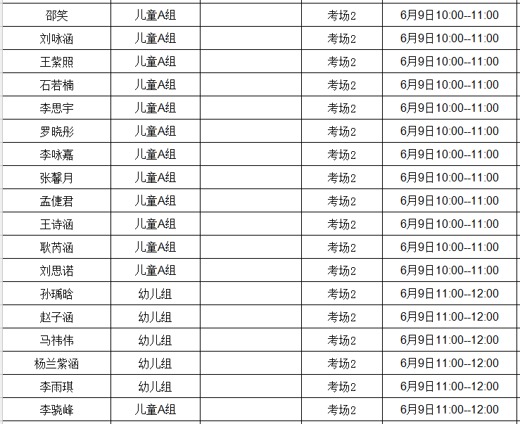 晋阳 儿童A组 考场2 6月10日10:00--11:00