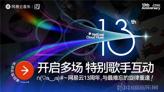 网易云音乐特别推出“在音乐里回到2013年”活动,盘点2013年的经典旋律,在音乐世界里与最初最难忘的旋律重逢。活动同步开启13周年特别歌手互动,周传雄、赵磊、杨丞琳惊喜空降,与乐迷一起聊音乐;上线陶喆、杨丞琳、刘若英、陈奕迅、陆虎、张杰、林俊杰等多场乐迷一起听活动,乐迷有机会得签名福利。与此同时,全面热推榜限时升级,乐迷可推荐喜爱的歌曲,周榜冠军歌曲可获得8大点位、超千万级曝光。