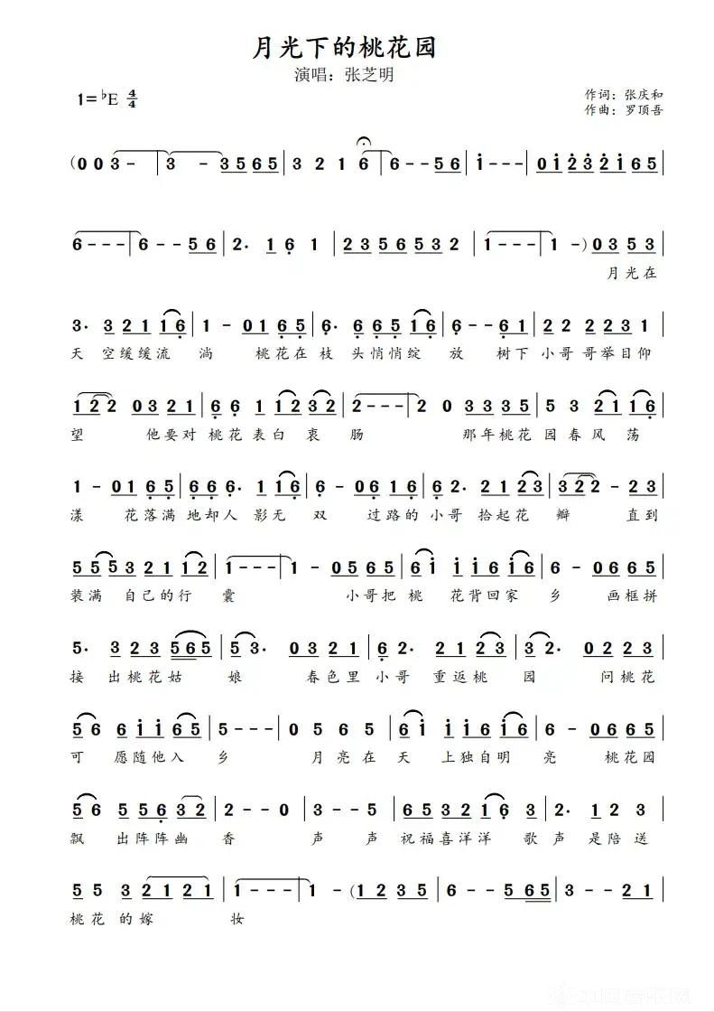 由著名散文家、诗人张庆和作词,著名音乐人罗顶吾作曲,中国内地青年女歌手、湖南省歌舞剧院歌剧团独唱演员、第十二届中国音乐金钟奖声乐比赛湖南赛区民族组金奖获得者张芝明演唱的《月光下的桃花园》,近日在QQ音乐、酷狗音乐、以及百度等多家平台上线发行。