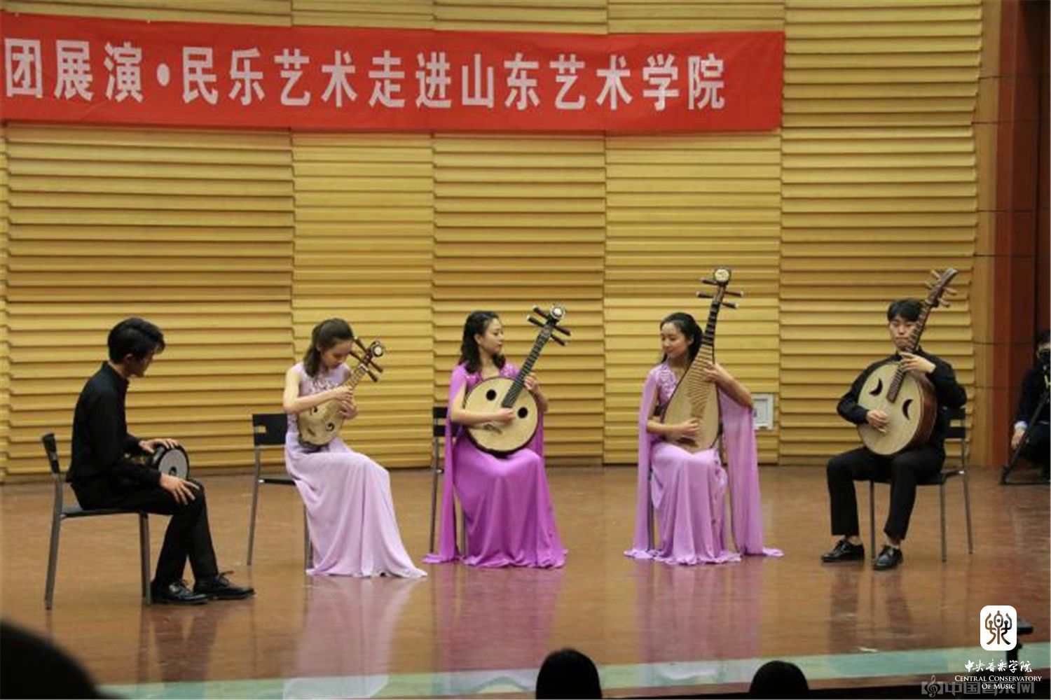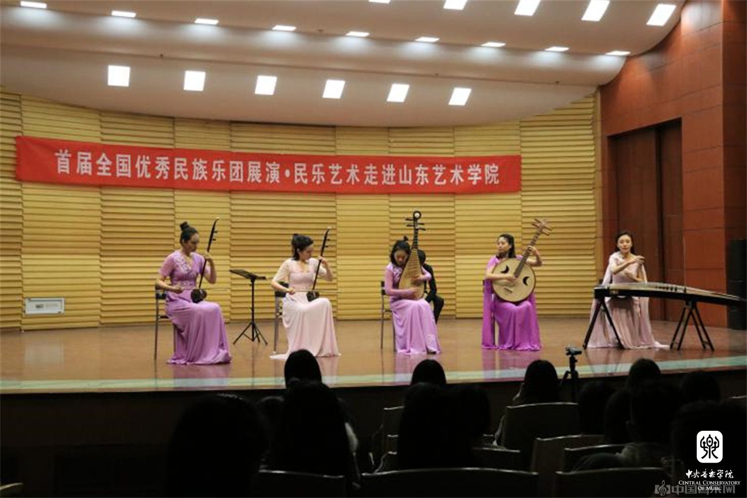 为营造首届全国优秀民族乐团展演的浓厚氛围,让更多的群众共享民乐艺术发展成果,本次展演还举办了“民乐艺术走基层”系列活动。作为系列活动中的重要组成,“民乐音乐校园行”——中央音乐学院民族室内乐团走进山东艺术学院,29日下午在山东艺术学院举办交流音乐会。