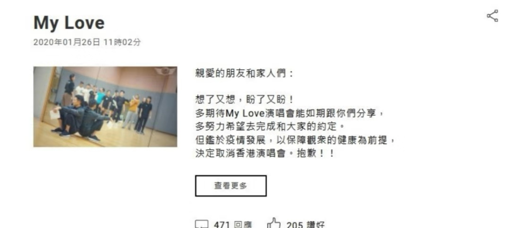 近日,刘德华官网发文:“想了又想,盼了又盼!多期待My Love演唱会能如期跟你们分享,多希望去完成和大家的约定,但由于疫情发展,以保障观众的健康为前提,决定取消香港演唱会,抱歉!”短短的几句话中不难看出这是刘德华在经过深思熟虑后做出的决定,红馆演唱会一波三折,华仔为此花费了不少心血,盼望已久与歌迷在2月份相约红馆,而如今却不得不因疫情原因做出让步,将大家的健康摆在第一位。