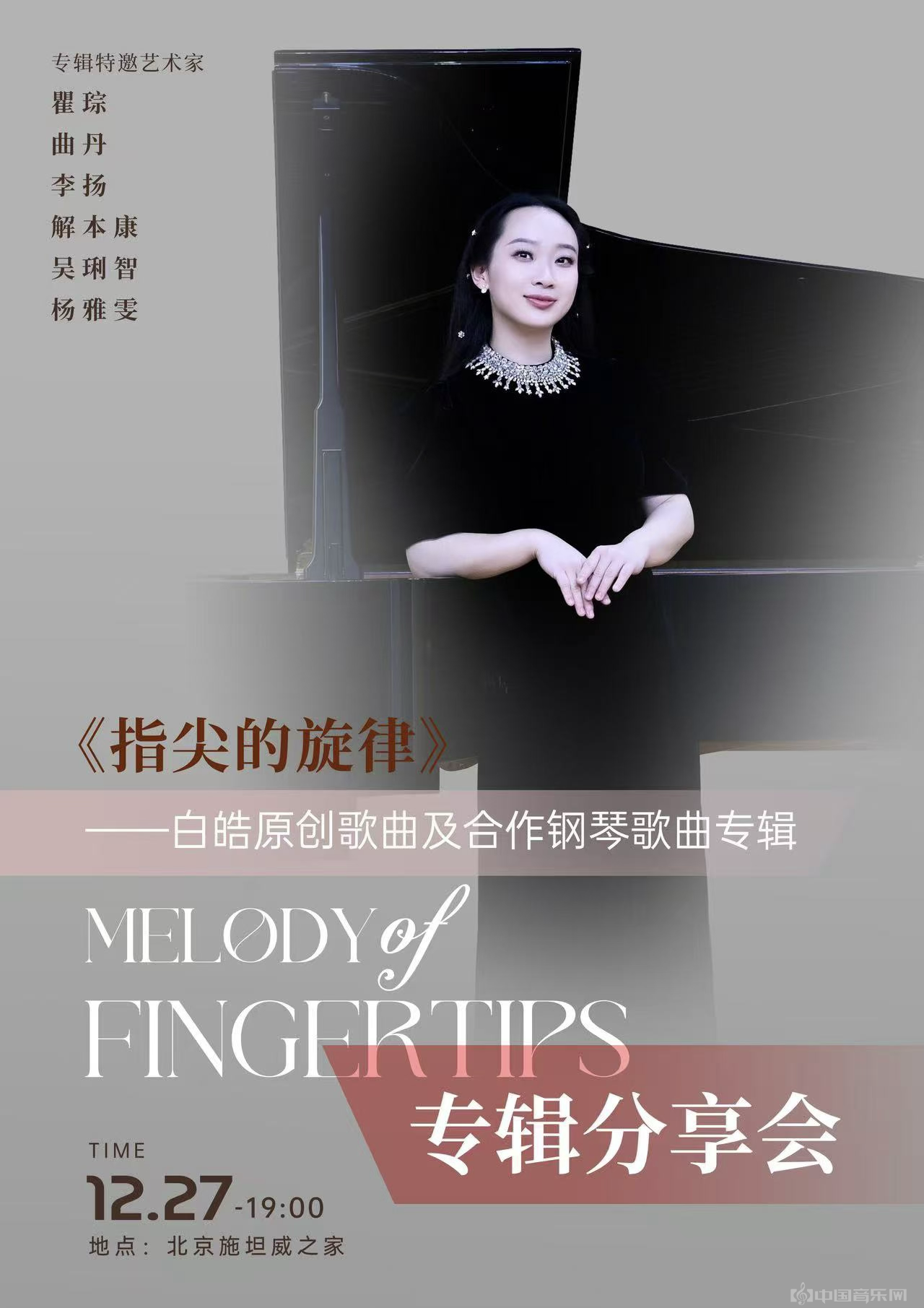 《指尖的旋律——白皓原创歌曲及合作钢琴歌曲专辑》分享会将登陆北京施坦威之家,多位著名歌唱家纷纷送上祝福12月27日19时,合作钢琴家白皓