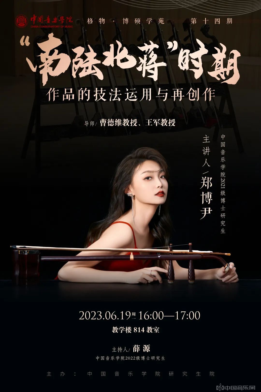南陆北蒋时期作品的技法运用与再创作❖主讲人:郑博尹(中国音乐学院2021级博士研究生)❖主持人:薛源(中国音乐学院2022级博士研究生)❖