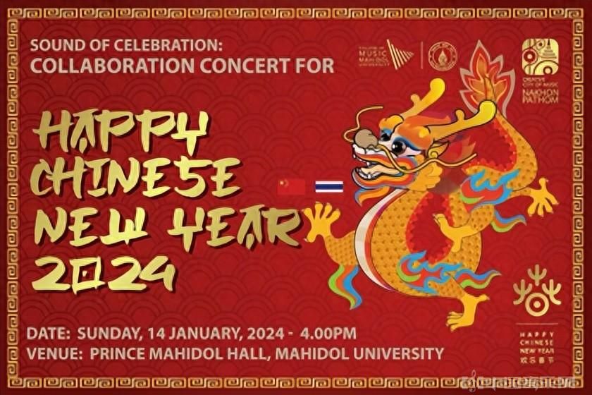 2024年1月14日,浙江音乐学院翡翠筝团受中国驻泰国大使馆和泰国玛希隆大学的邀请,赴泰国参加由中国驻泰国使馆与泰国玛希隆大学音乐学院合作举办的“欢庆之声—2024欢乐春节音乐会”,为迎接中国农历龙年的到来,翡翠筝团与玛希隆音乐学院交响乐团于玛希隆大学音乐学院王子音乐厅一齐奏响“中泰一家亲”的序曲。