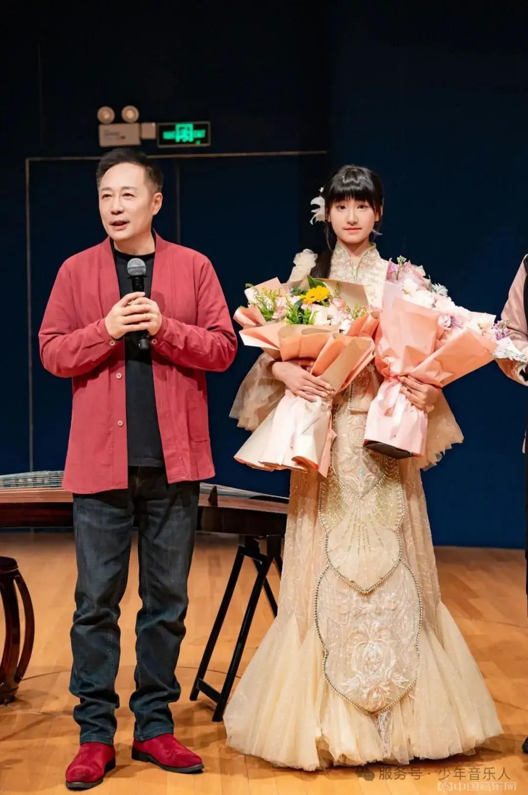 曲毕,山奇老师登台送上祝词,他盛赞黄姚婉尔的演奏“兼具少年意气与古典韵味,将《忆江南》的意境与情感传递得恰到好处”,并寄语这位少年演奏家:“国乐的传承需要新生代的坚守与创新,愿你以指尖为笔,以筝音为墨,在传统艺术的土壤中开出更绚丽的花朵,让千年国乐焕发更持久的生命力。”真挚的期许赢得全场热烈掌声。