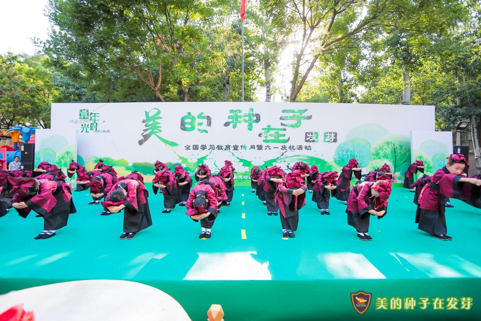 整台节目呈现了一场美轮美奂的中国传统文化盛宴。阳光透过围绕在幼儿园的绿树,照在笑成花儿的孩子脸上,夏日凉风阵阵,全场欢声笑语不断,有家长感慨:“幼儿园寓教于乐,孩子玩得不亦乐乎,这是最美好的六一儿童节”,——美的种子在现场所有人的心里发芽!