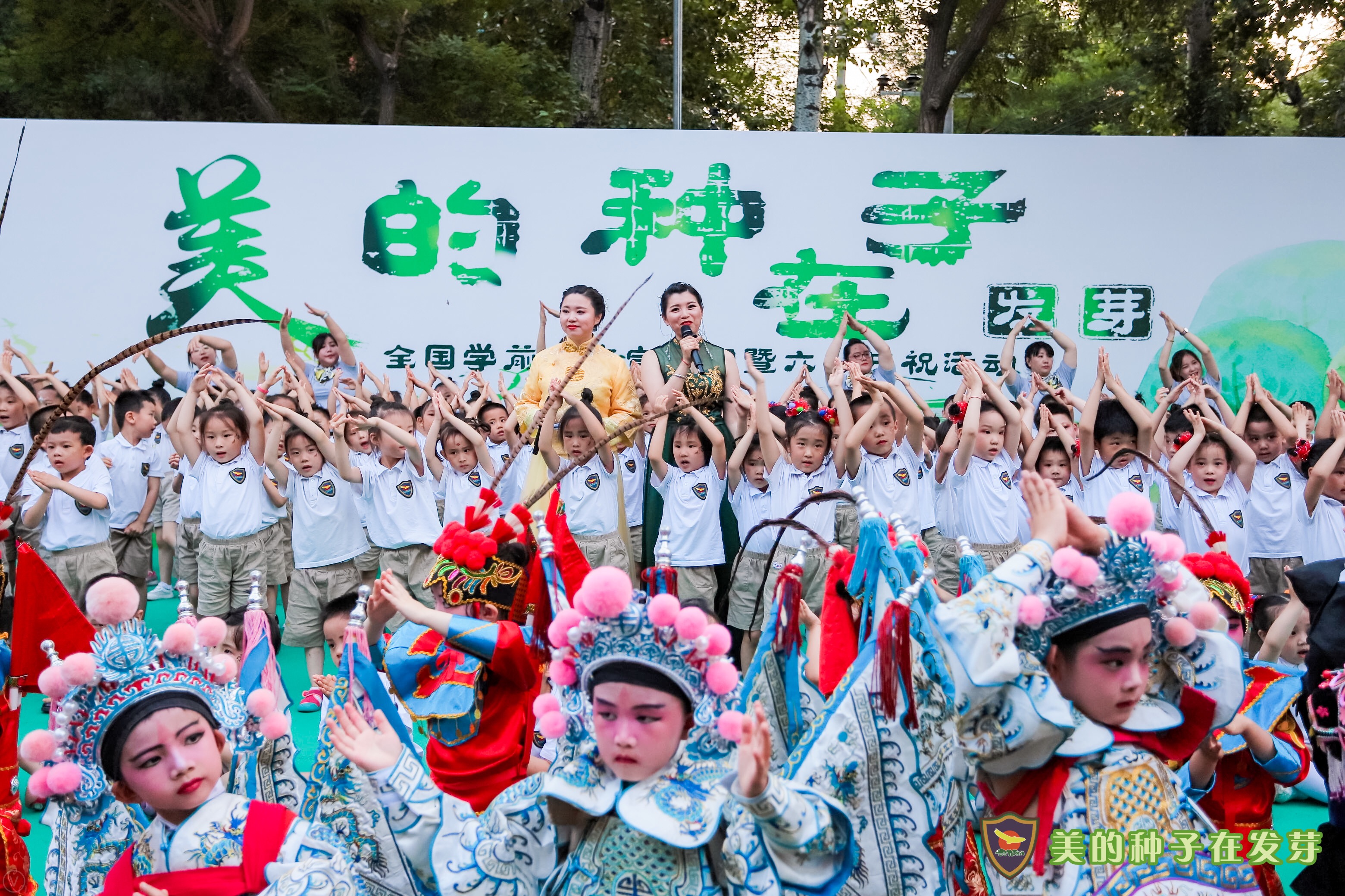 2019年是第70个“六一”国际儿童节,也是祖国70周年华诞,北京明天幼稚集团二幼双榆树园以贯彻落实党的“十九大”精神为引领,以“立德树人”为根本任务,以“协同发展”为价值导向,以“深度融合”为推进策略,以集团此次六一主题“美的种子在发芽”为主旨,借助大型庆祝活动,形成以“文化”为引领(即国家层面的传统文化、集团层面的集团文化),通过“两方”对接(即集团文化与传统文化对接,提升文化自信;集团文化与园所师幼成长对接做到文化赋能),将对“六艺”的新理解和新诠释,将教育理念促幼儿全面发展的效果,用可视化、舞台呈现、幼儿与家长共同参与的六一儿童节演出方式落地,无疑是一次创新之举。