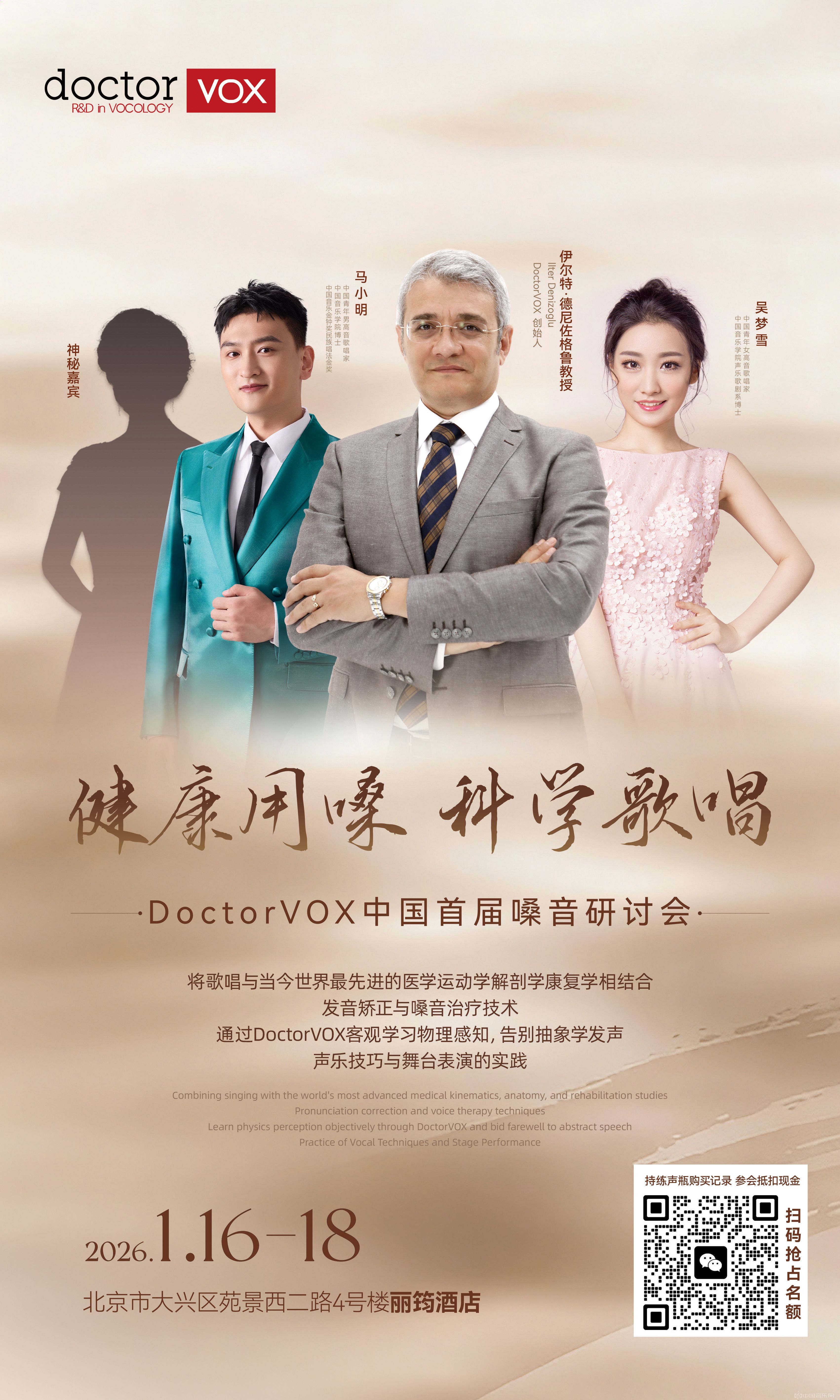 2026年1月16日-18日,DoctorVOX中国首届嗓音研讨会将在北京正式举办。这场以“健康用嗓 科学歌唱”为主题的行业盛会,由DoctorVOX品牌发起,首次将国际前沿的医学嗓音研究与声乐艺术训练深度结合,为声乐全领域从业者、教育者及爱好者带来一场科学用嗓的专业盛宴。