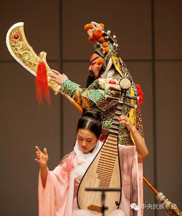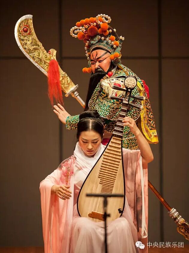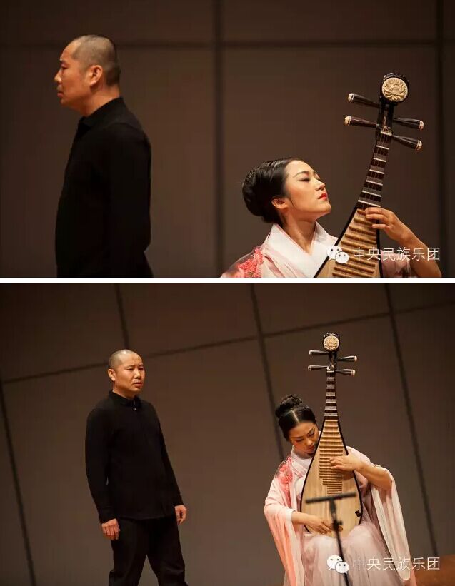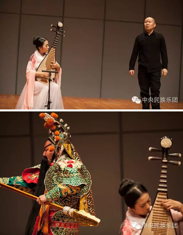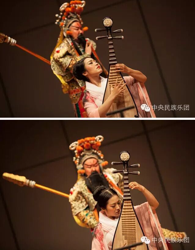 另一部则是由台湾作曲家陆枟创作的琵琶与民族管弦乐《脸谱集》,这部作品以中国戏曲四大京剧角色为主要线索,共分四个乐章(打乱了“生、旦、净、末、丑”的顺序),用琵琶形象地表现了生、丑、旦、净四个京剧角色的性格特征。第一段首先用琵琶模仿老生的音腔;第二段是武丑,一个贪官的形象,就像京剧中胖胖的县官的角色,给人以逗趣的感觉;按照交响乐的顺序,第三段是柔版,旦角,为听众描述了一个年华老去的青衣的角色,空灵而悠远。最后一段是净(即花脸),所以技术性更强一些,给人以杀气腾腾的感觉。