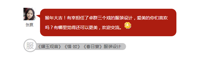 其中,“卓群粉”、“主创粉”注意啦!自己来看或是推荐亲朋好友来看的,请在《碾玉观音》官方宣传平台“东雅西趣”微信公众号对话框上传图片,晒“卓群三部曲”(《惜·姣》《碾玉观音》《春日宴》)以往票根(签上自己名字),并在本篇文章底部“写留言”,给你亲爱的女神姐姐或任何一位主创留言拜年!精彩贺辞将在评论区显示。剧组爱你们!想知道铁粉都有谁
