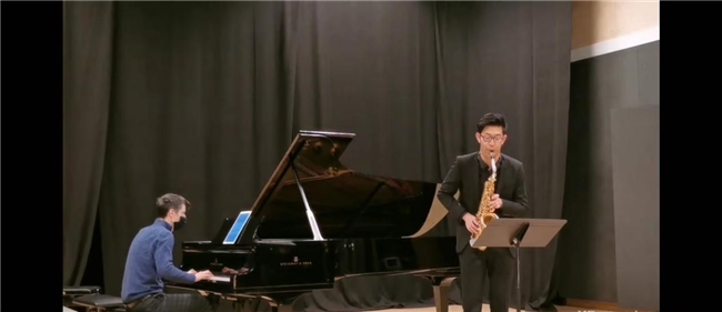 作为JLV Ligature自2019年起签约的全球代言艺术家,胡桐嘉始终以创新姿态探索音乐边界。2023年1月,他在苏格兰皇家音乐学院与长笛演奏家Cruseyde Holman、钢琴家Max McWhirter合作,演绎夏尔·凯什兰的《珍·哈露的墓志铭》,以细腻音色诠释法式浪漫;2022年11月,他首演作曲家Graham Fitkin的现代作品《Braemar》,以极具张力的演奏赢得业界赞誉。2024年3月,他与荷兰阿姆斯特丹皇家音乐学院萨克斯教授阿诺·博恩坎普(Arno Bornkamp)共同演绎德彪西经典,在《小组曲》中展现印象派音乐的朦胧美感,更在《德彪西狂想曲》中以高音声部引领全场,被《阿姆斯特丹音乐报》评价为“用萨克斯管唤醒沉睡的巴黎”。