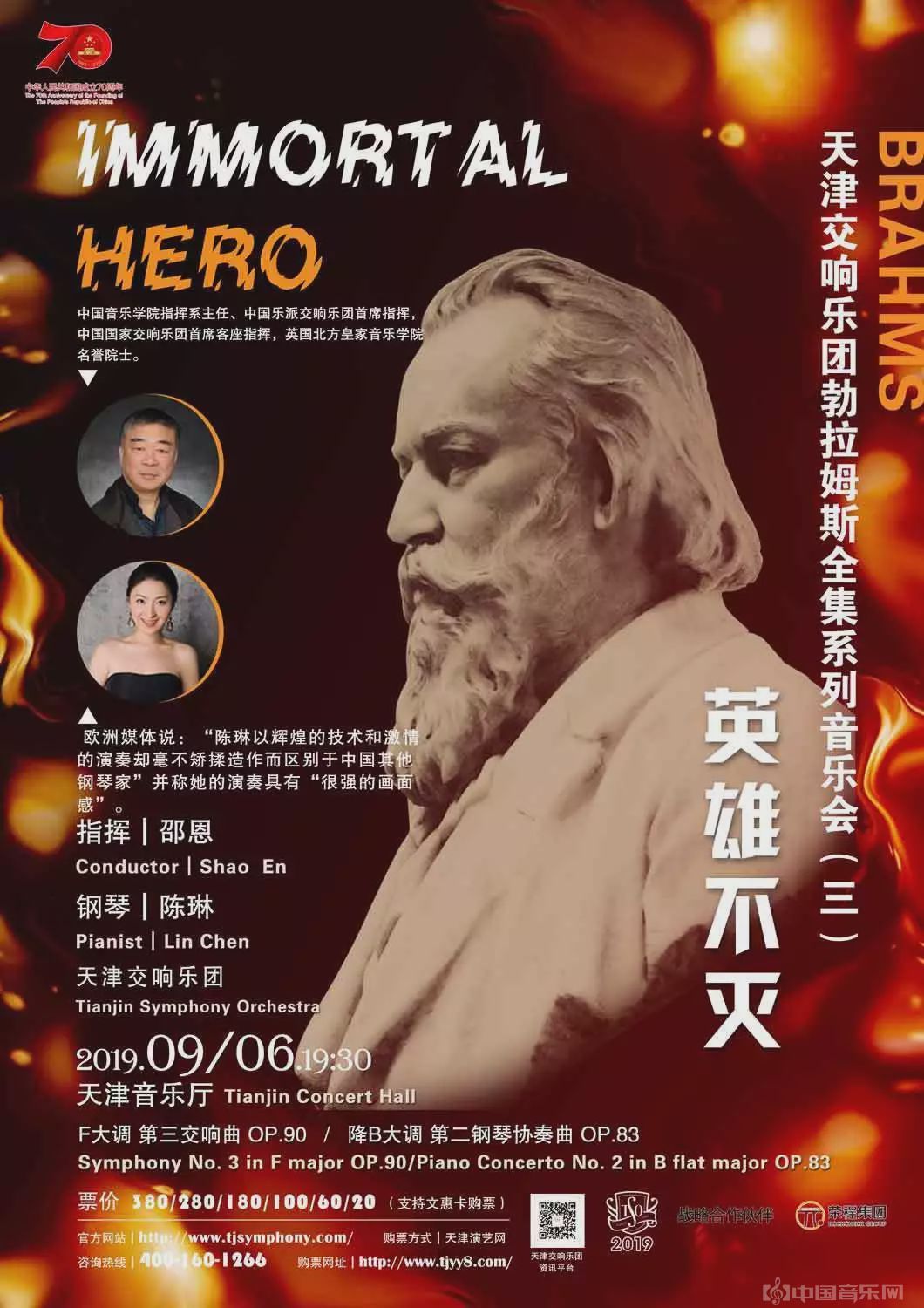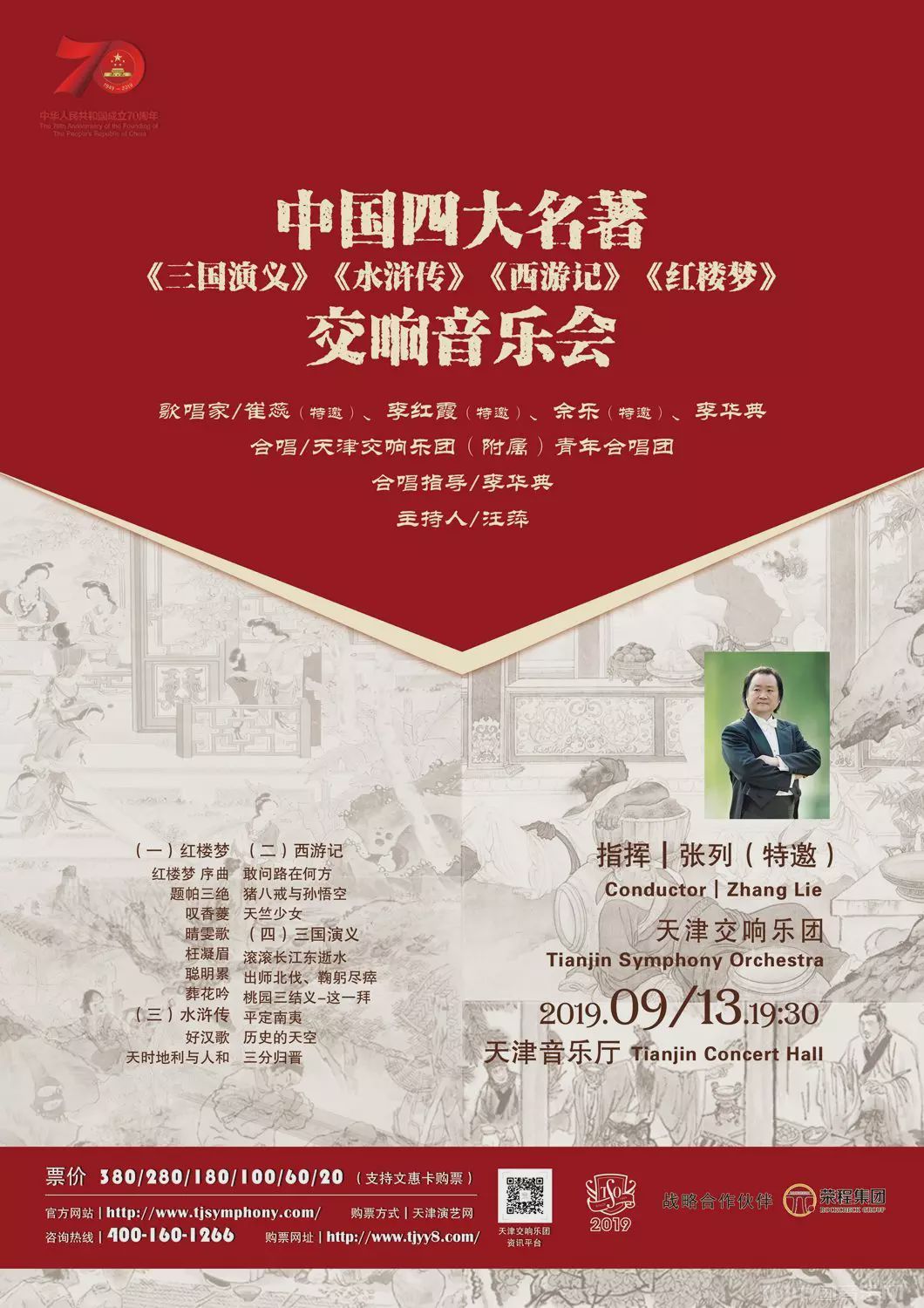 今年是新中国成立70周年,在这一伟大的历史节点上,作为文艺战线上的一支队伍,天津交响乐团始终不忘初心、牢记使命,通过音乐弘扬中华优秀传统文化和社会主义核心价值观,以艺术的形式回顾中国人民70年来的奋斗历程,为中华人民共和国成立70周年致敬献礼。