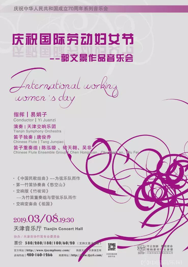 3月8日,天交精心推出“庆祝国际劳动妇女节——郭文景作品音乐会”,女指挥家易娟子执棒,联手笛子名家唐俊乔、青年笛子演奏家陈泓璇两位女演奏家,向观众展示出当代女音乐家的风采。青年男性笛子演奏家褚天翱、吴非担当“绿叶”,他们共同为观众奉献了一台中西合璧、韵律悠长的精彩演出。