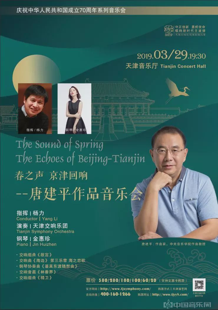 3月29日,天津交响乐团上演了“春之声 京津回响”唐建平作品音乐会。为观众带来了由当代著名作曲家唐建平创作的交响组曲《故宫》、交响曲《海边》、钢琴协奏曲《鉴真东渡随想曲》、交响音画《林香界》、交响组曲《精卫》等多部佳作。