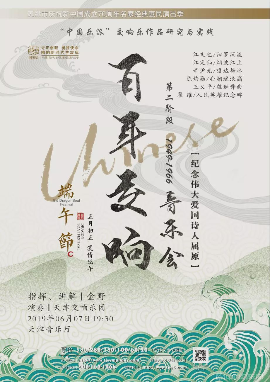6月7日,由金野指挥,天津交响乐团演奏的“中国乐派”交响乐作品研究与实践──“百年交响”音乐会第二场“纪念伟大爱国诗人屈原”专场演出在天津音乐厅上演。通过多首当代优秀中国作品的演奏,艺术家带领观众在乐声中向古圣先贤致敬。