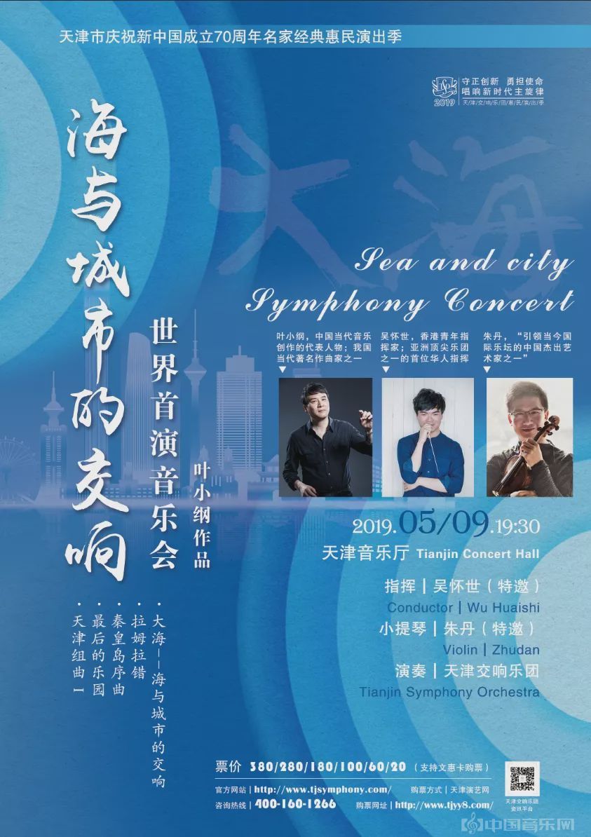 5月9日,由中国音协主席、作曲家叶小纲创作的作品《海天交响——海与城市的交响》在天津音乐厅首演,为津城的历史文化与风土人情注入新的音符。同时,此作也是天津交响乐团与叶小纲合作的第四部天津题材音乐作品。