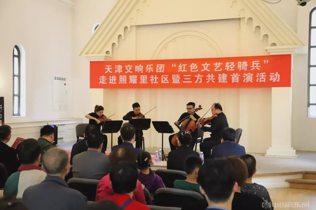 4月16日,天津交响乐团·古典时刻四重奏“轻骑兵”小分队走进照耀里社区。