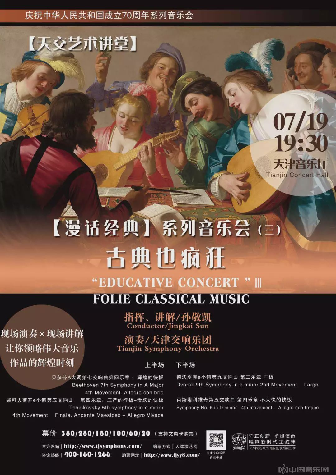 2019年,“天津交响乐团艺术讲堂——漫话经典”系列音乐会共举办5场演出,青年指挥家孙敬凯率乐团以边讲解边演奏的方式,带领观众深入了解古典音乐大师的经典作品,受到大家的欢迎与肯定。