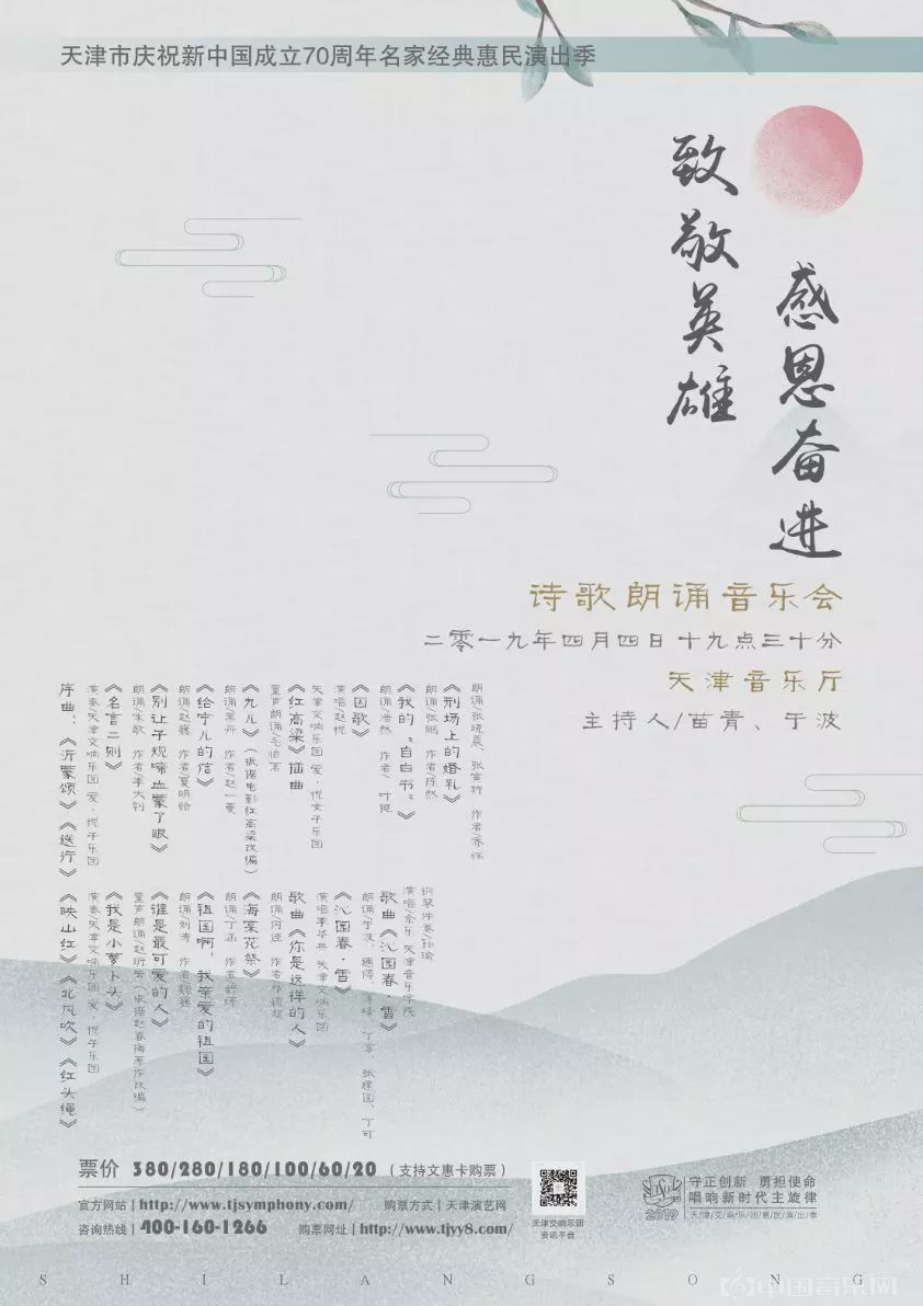 清明节期间,由天津交响乐团与天津市朗诵艺术协会主办的“致敬英雄·感恩奋进”诗歌朗诵音乐会在天津音乐厅举行,此次活动也是天津市庆祝新中国成立70周年名家经典惠民演出季系列活动之一,这样把诗朗诵、歌曲和乐曲相结合的形式充分烘托出现场氛围,更好地展现和丰富了演出的内容与题材,深深地感染着台下的观众。