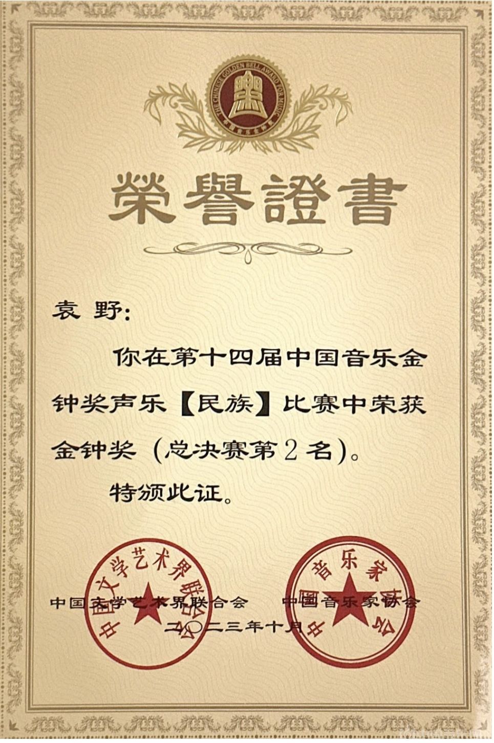 “中国音乐金钟奖”是经中共中央批准,由中国文学艺术界联合会、中国音乐家协会共同主办的、全国唯一常设的音乐综合性大奖。2023年10月15日至25日,第十四届中国音乐金钟奖在成都举行。