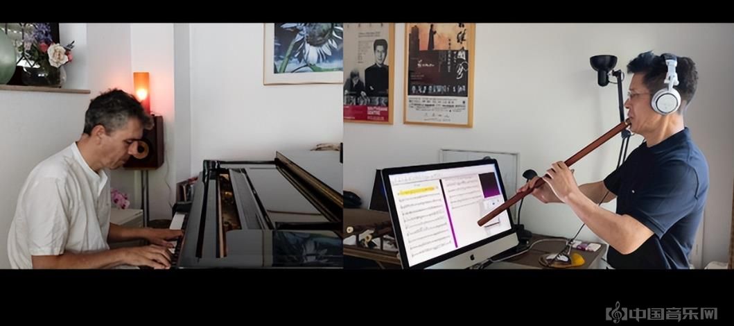 △张维良(右) 与 海纳·格兰钦(德)Rainer Granzin 连线合奏