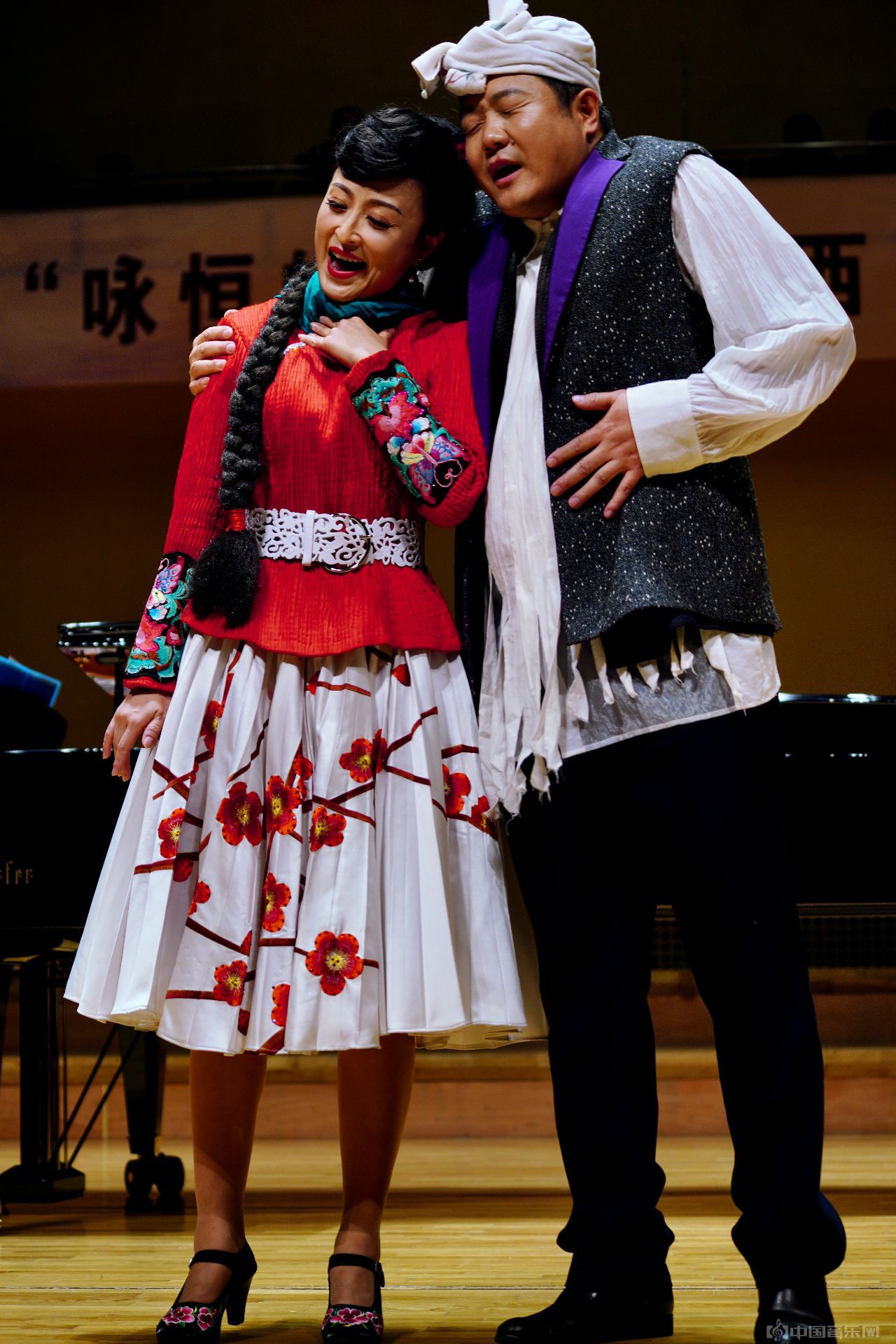 先说这台音乐会的形式,确实不同于一般,一进场就看到钢琴放在舞台正中间,钢琴两边对称放了十二把椅子,心里就琢磨除了钢琴还有其他乐器伴奏?除了声乐节目还有器乐节目?可是节目单上没有显示啊?胡思乱想之间,钢琴伴奏上来了,音乐响起来了,女演员唱着《桃花红 杏花白》上来了,歌声中男演员上来了,《桃花红 杏花白》结束了,“嗨——吆呺嗨……”号子喊出来了,男声唱起了《黄河扳船号子》,一女一男、一柔一钢、一静一动,歌者表达上的反差给观众带来听觉上的震撼,真是出乎意料。两首歌结束掌声中,主持人走上台,不说套话“观众朋友大家好”而是请现场的观众和台上的演员一起唱一段《桃花红 杏花白》,她请一个演员起头,又让钢琴伴奏给音乐,台上台下歌声响起,“桃花你就红来杏花你就白,爬山越岭我寻你来呀,阿格呀呀呆”那一刻,几乎全场观众都在唱,我正想不得了啊,这首歌可以做山西的省歌了,就听见台上的主持人说:“普及率真高啊”!又说音乐厅像一个民歌沙龙般的呈现”,她请台上的演员坐下来,她说:“尊敬的女士们先生们大家晚上好!您现在参与的是《咏恒的旋律——山西民歌专场音乐会》”,我被这段话中的“沙龙““参与”两个词打动,接下来,歌者在台上演唱,他们在音乐声中站起,互相之间自然交流,然后面对观众演唱,音乐会开成这个样式,新、亲切、有交流,有观赏性,点一个赞!