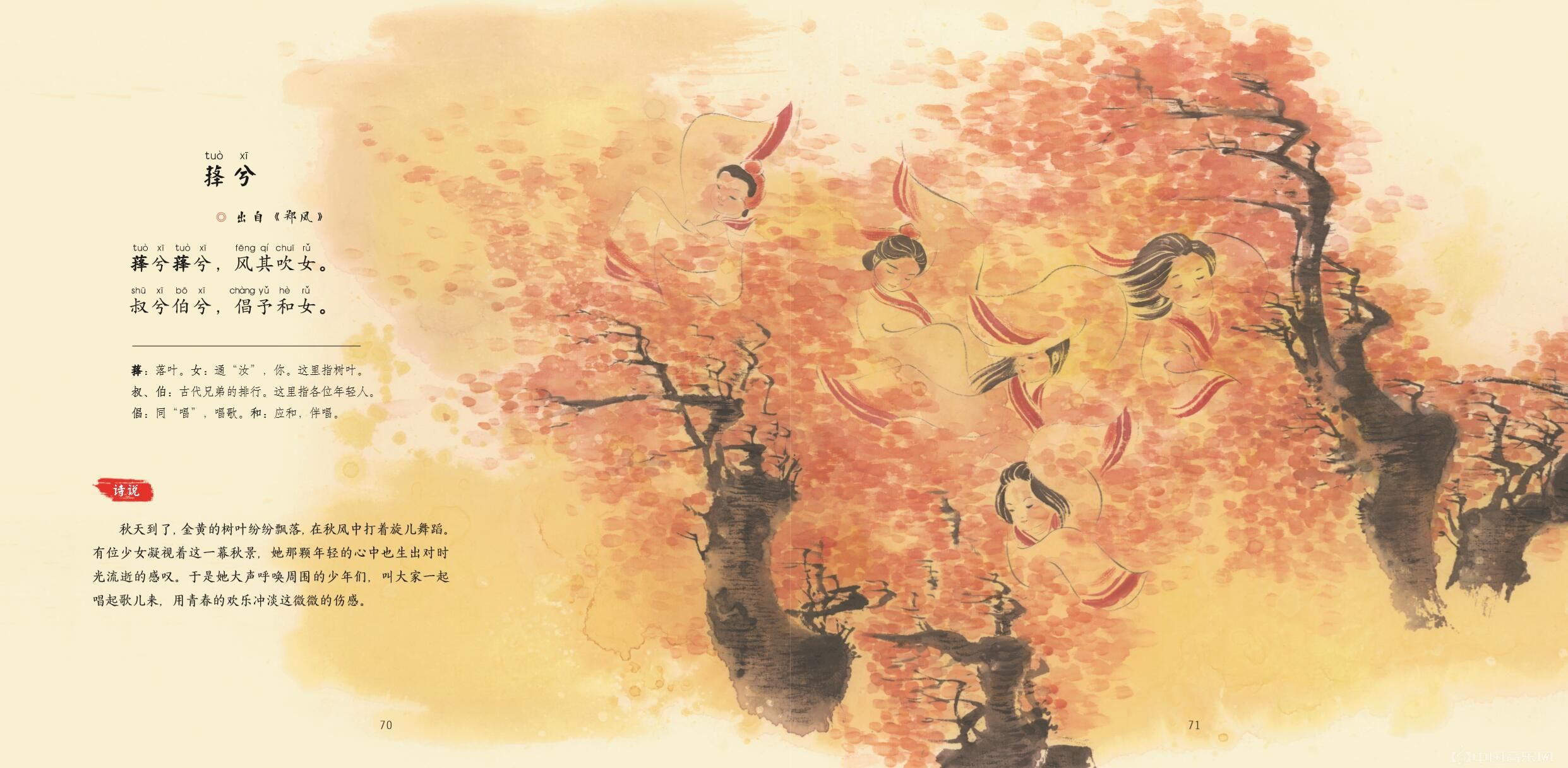 中国音乐,常与文学相联系。文学为主,而音乐为之辅。古诗三百首,乃中国历代文学不祧之祖。乐即附于诗,故诗辞更重要过歌声。诗体中之最庄严者,其歌声最简淡。清庙之颂,一声三叹。大小雅次之。风诗最下,其歌声亦最繁。孔子言:"郑声淫。"因其歌声尤繁,声掩其辞,特以取悦于听者。卫风亦然。所谓淫,非指其辞言。逮后乐声愈变愈繁,至孟子时,乃有今乐古乐之争。音乐之愈趋独立,乃至脱离其文学之本。于是此下儒者,仅守《诗经》文辞,而至忘弃其音乐。