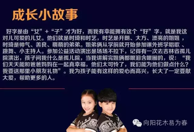 从曼氏传媒李先生处了解,“对于让两个孩子走模仿凤凰传奇之路的说法是不正确的。我们认为,模仿秀除了长得像的,其他都应该是专注于大明星的作品,对于长得像的大小演员非常羡慕:例如小小赵薇周美君,也纳入旗下并在过去的一年时间里悉心推广,例如小任贤齐黄成麟,也交为好朋友...但是,我们更关注他们对于所模仿的大明星作品的驾驭。小琦和小艺两个孩子我们非常了解也非常喜欢,因为他们不仅才华横溢而且情商颇高。这次之所以更名,是为了致敬偶像以及感谢偶像的粉丝,因为凤凰传奇某地官方粉丝团集结大力为新浪id:龙奇凤艺赵时艺导流粉丝。更不像传言中的,我们要拿两个孩子当摇钱树,两个姐弟长大了,再换其他小金童玉女......我们不签约小姐弟,任由他们更广度的发展,鼓励他们拜访全国所有名师、机构,因为有了大家的帮助,这两个孩子才更有榜样的力量,影响更多的孩子,这就是做教育的最终目的”期待他们今晚“改版”后的首秀,演唱作品暂时不能透露。