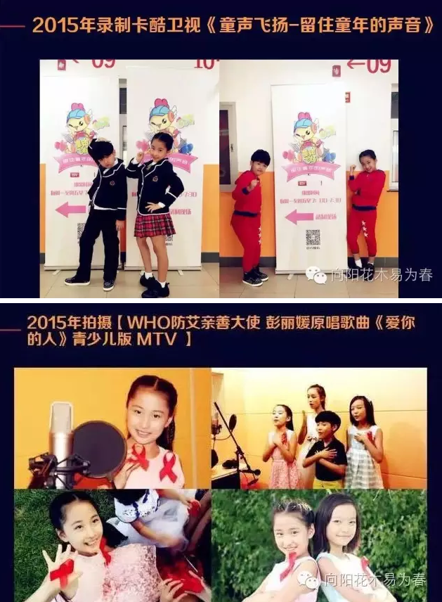 2015年9月参加彭丽媛原唱“爱你的人”MV拍摄,入选红丝带小志愿者