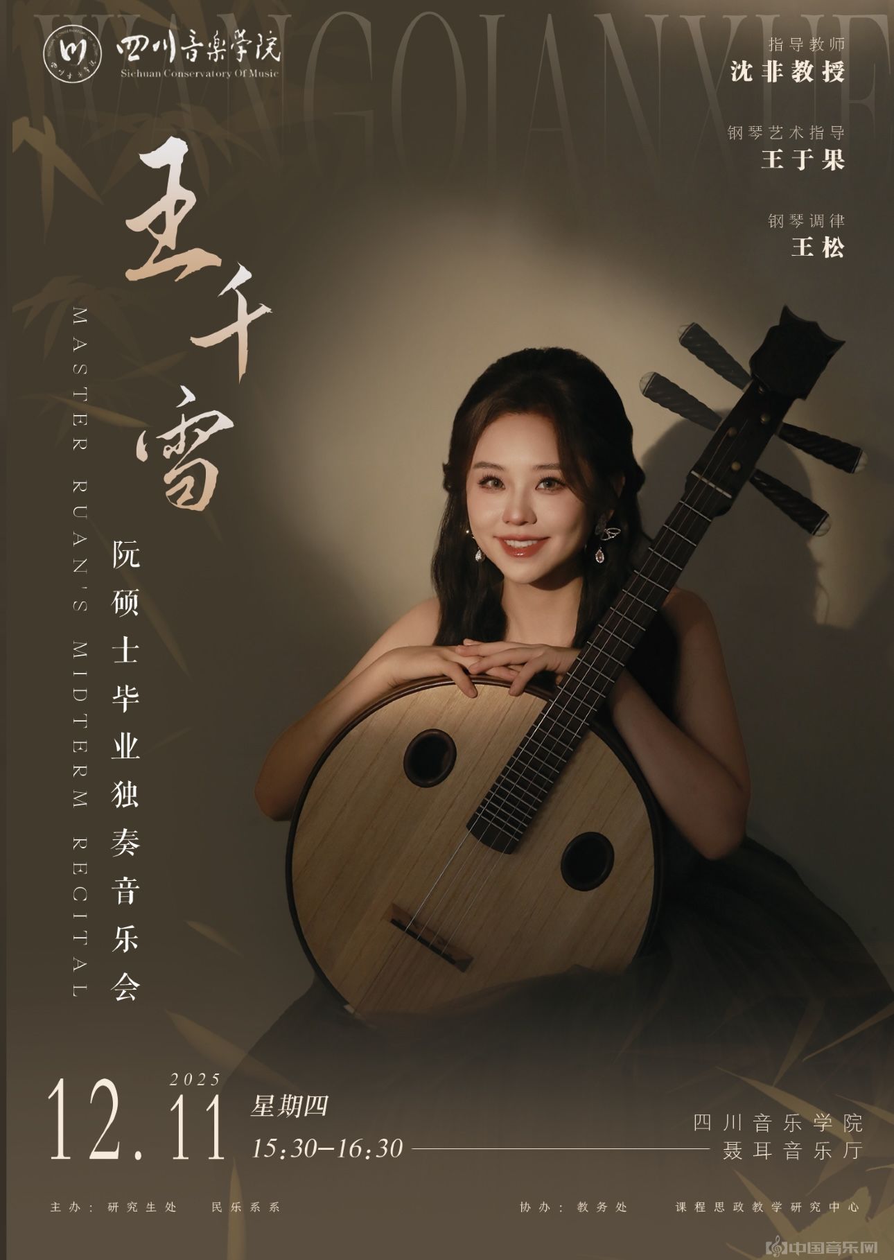 王千雪阮硕士毕业独奏音乐会2025年12月11日 15:30四川音乐学院聂耳音乐厅导师:沈非 教授钢琴艺术指导:王于果主办:四川音乐学院研究生