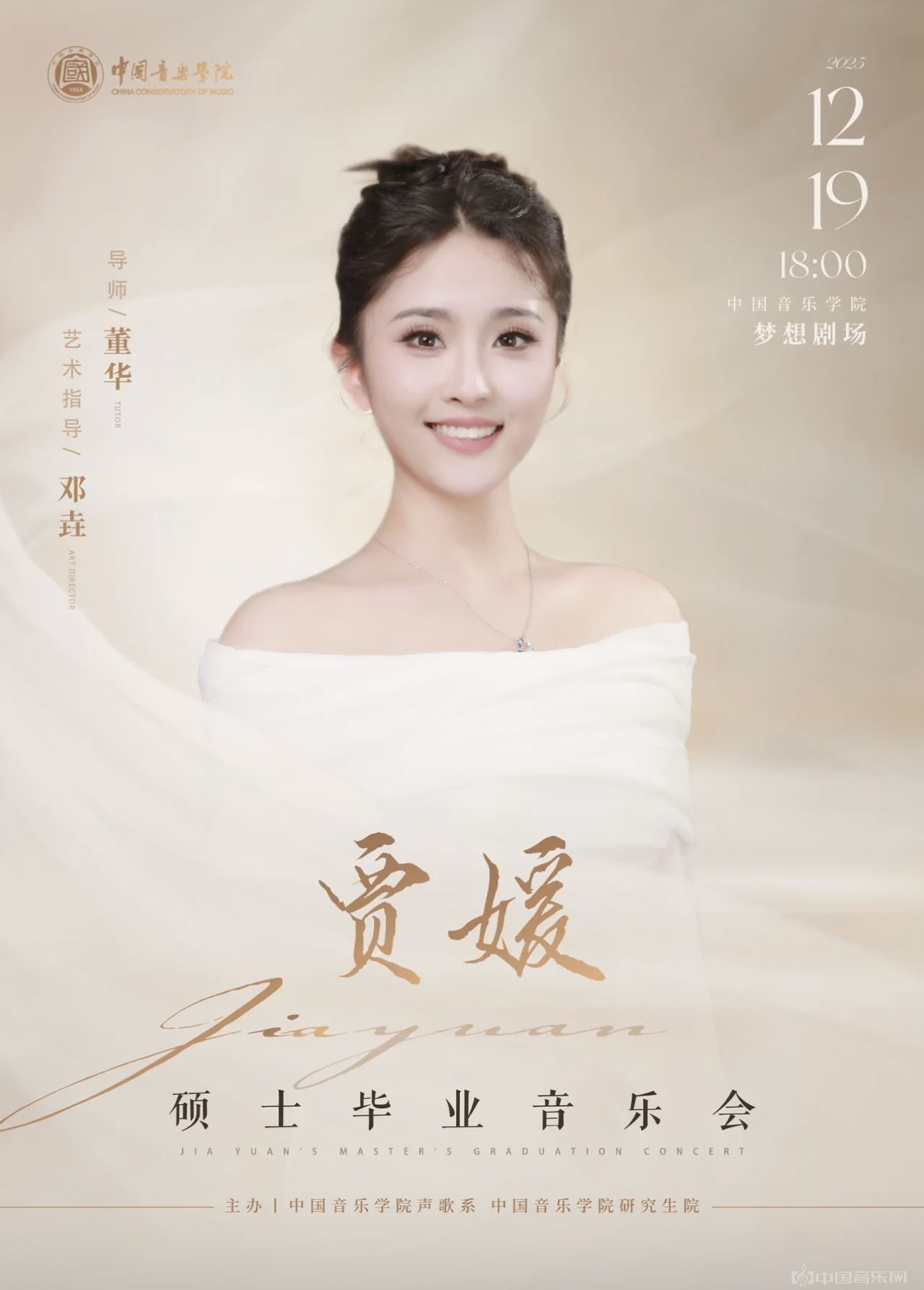 贾媛硕士毕业音乐会2025年12月19日 18:00中国音乐学院 梦想剧场导师:董华艺术指导:邓垚主办:中国音乐学院声歌系、研究生院媒体支持: