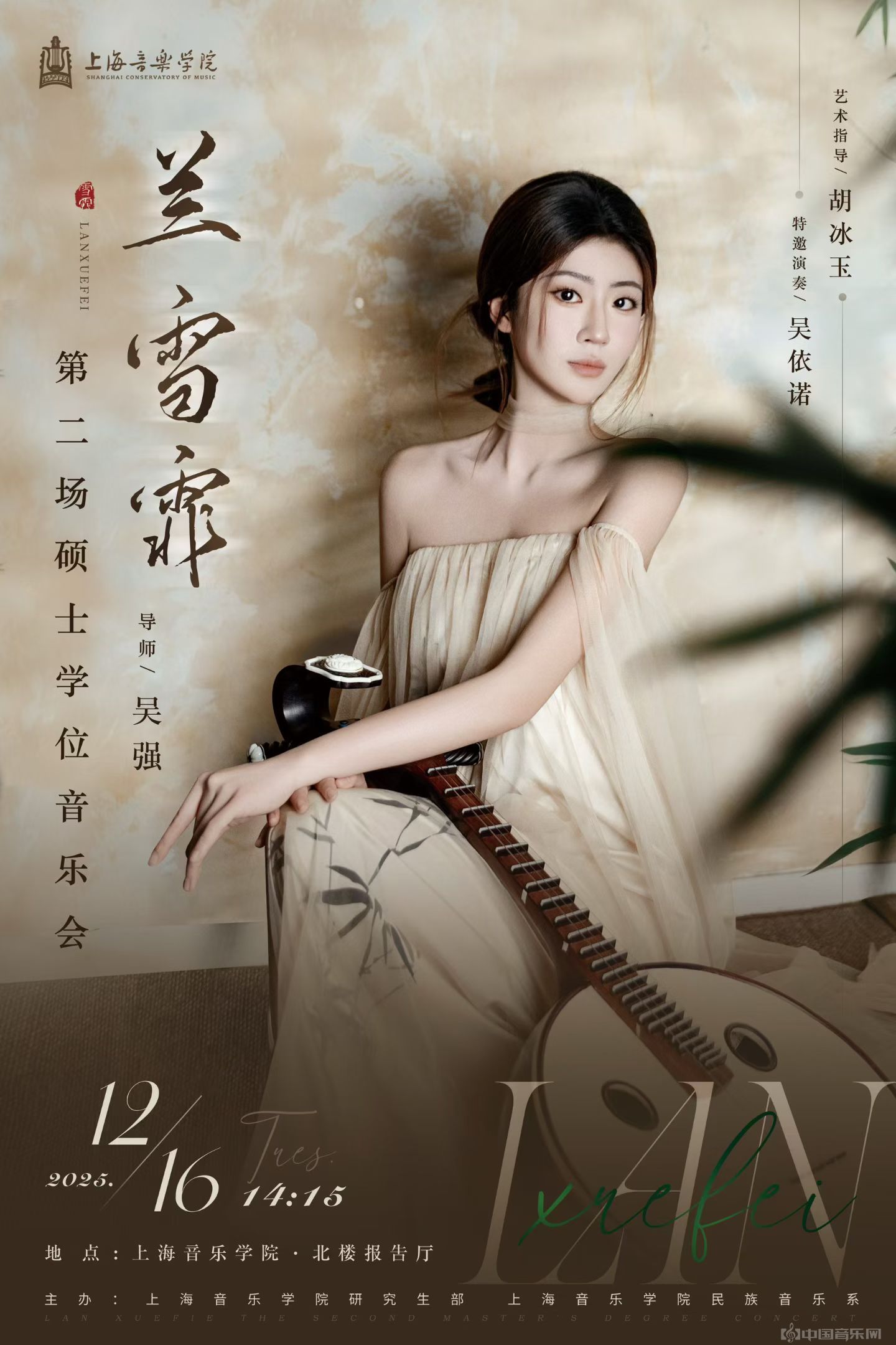 兰雪霏第二场硕士学位音乐会2025年12月16日 14:15上海音乐学院 北楼报告厅导师:吴强艺术指导:胡冰玉特邀演奏:吴依诺主办:上海音乐学