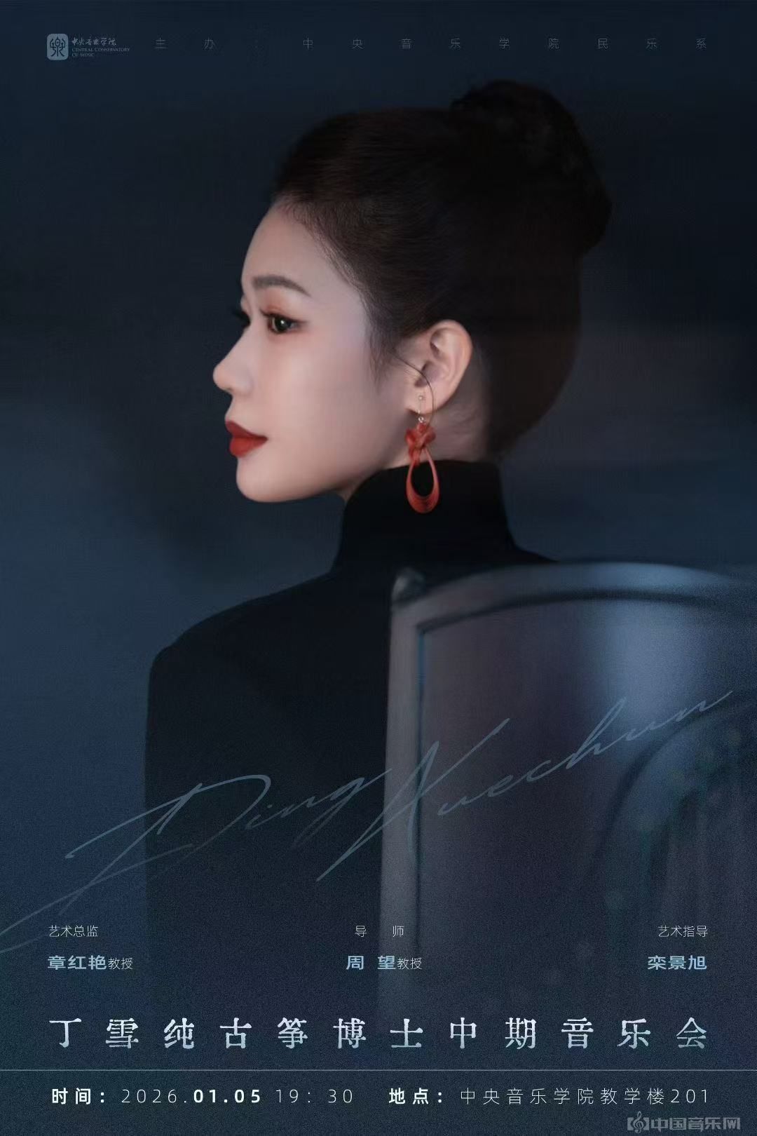 丁雪纯古筝博士中期音乐会2026年1月5日 19:30中央音乐学院 教学楼201艺术总监:章红艳 教授导师:周望 教授艺术指导:栾景旭主办:中央