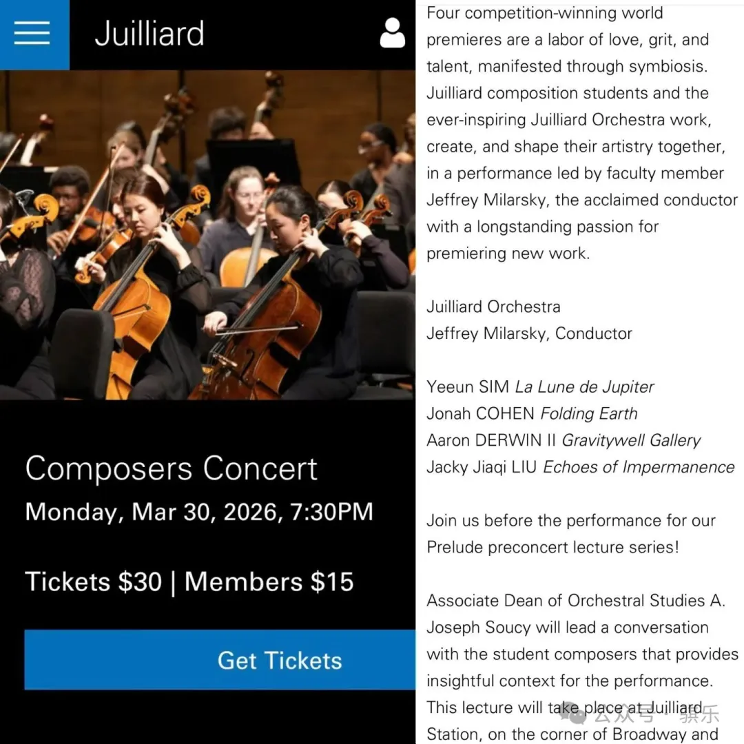 2026年3月30日,纽约林肯中心爱丽丝·塔利音乐厅将迎来一场备受瞩目的音乐盛事——茱莉亚学院年度作曲家交响音乐会。在这场汇聚四部获奖世