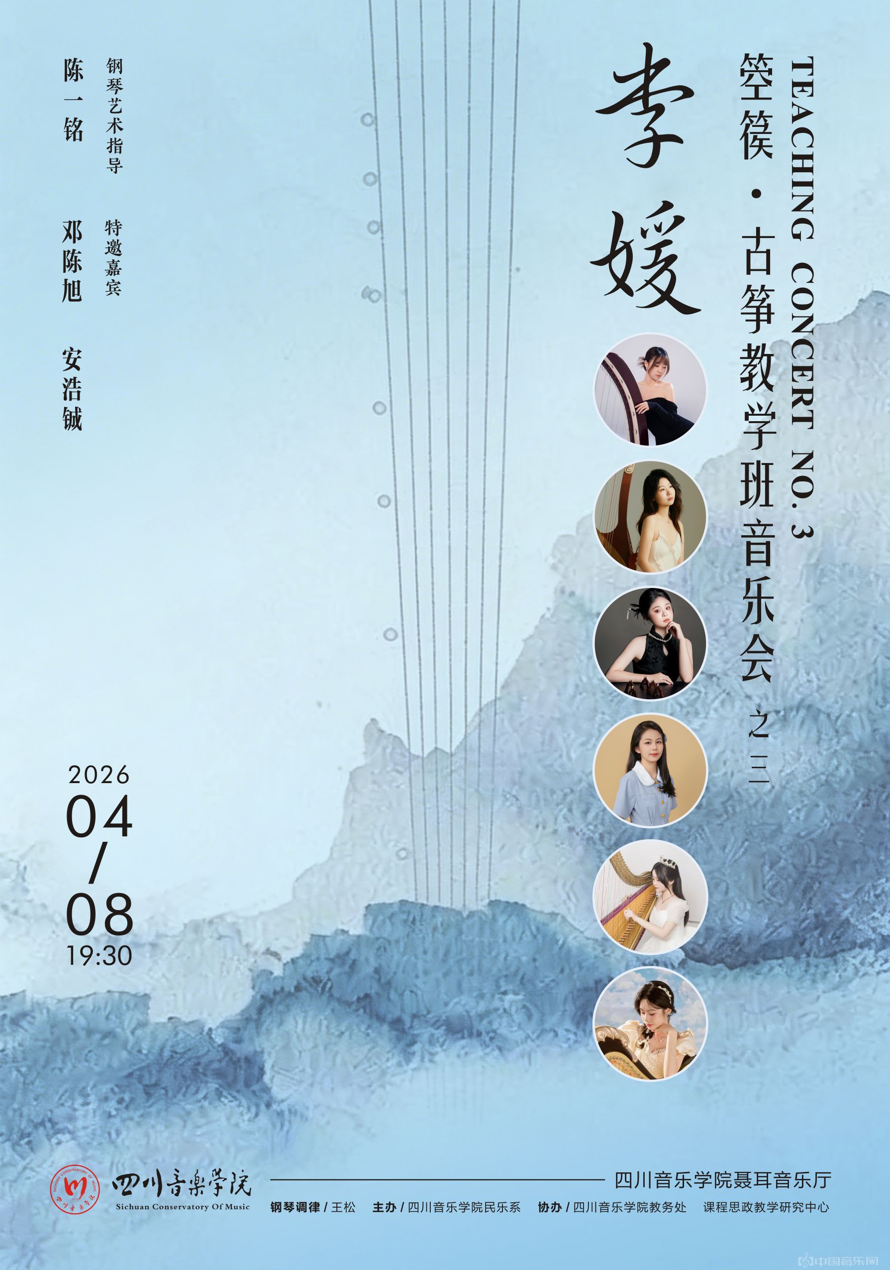 李媛箜篌·古筝教学班音乐会指导教师:李媛钢琴艺术指导:陈一铭特邀嘉宾:邓陈旭、安浩铖演出:岳佳仪、杨涵钧、张芯洁、王泽阳、李美萁、