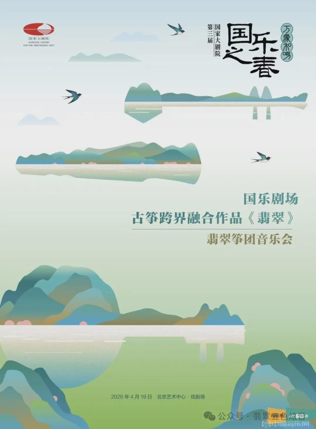 古筝跨界融合作品《翡翠》——翡翠筝团音乐会国家大剧院第三届 "国乐之春 "将于4月2日至25日在国家大剧院和北京艺术中心举行。作为国家大剧院