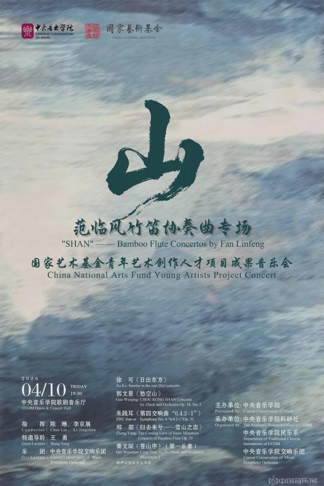 4月10日范临风将携手中央音乐学院交响乐团于中央音乐学院歌剧音乐厅呈现山——范临风竹笛协奏曲音乐会本场音乐会以山为题。山,不仅是自然