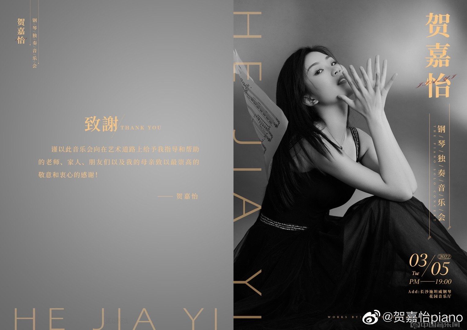 在2020年贺嘉怡受邀参加第二届古镇-琴韵国际钢琴艺术节,与小提琴家MarceloSoares和大提琴家PolaBenke合作演出贝多芬钢琴三重奏第四首,作品11号。2020年12月,受邀与国际钢琴家,联合国和平大使,郎朗先生同台齐奏。同时,也是2021Aegio国际钢琴比赛AegioInternationalPianoCompetition的获奖者。