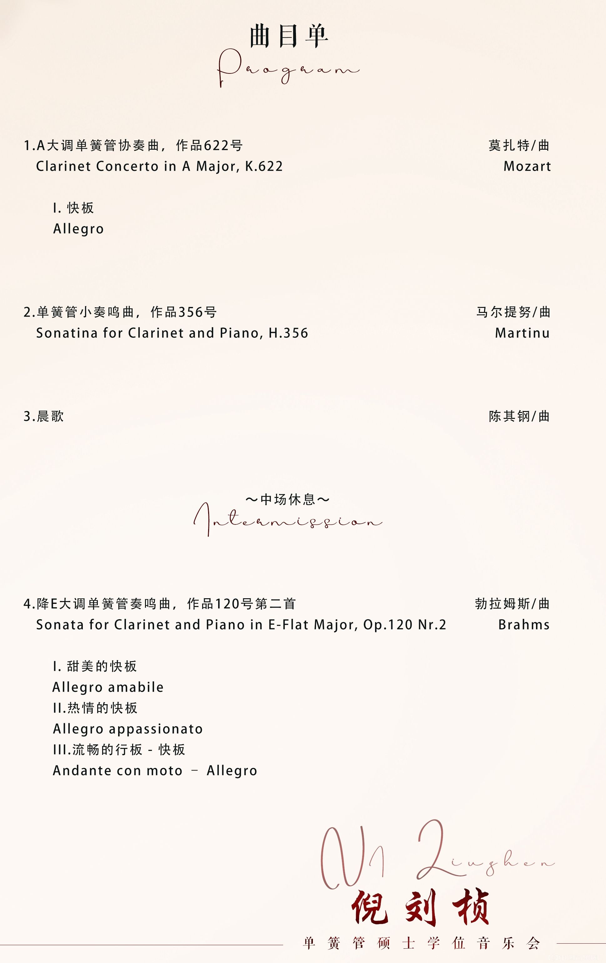 倪刘桢单簧管硕士学位音乐会