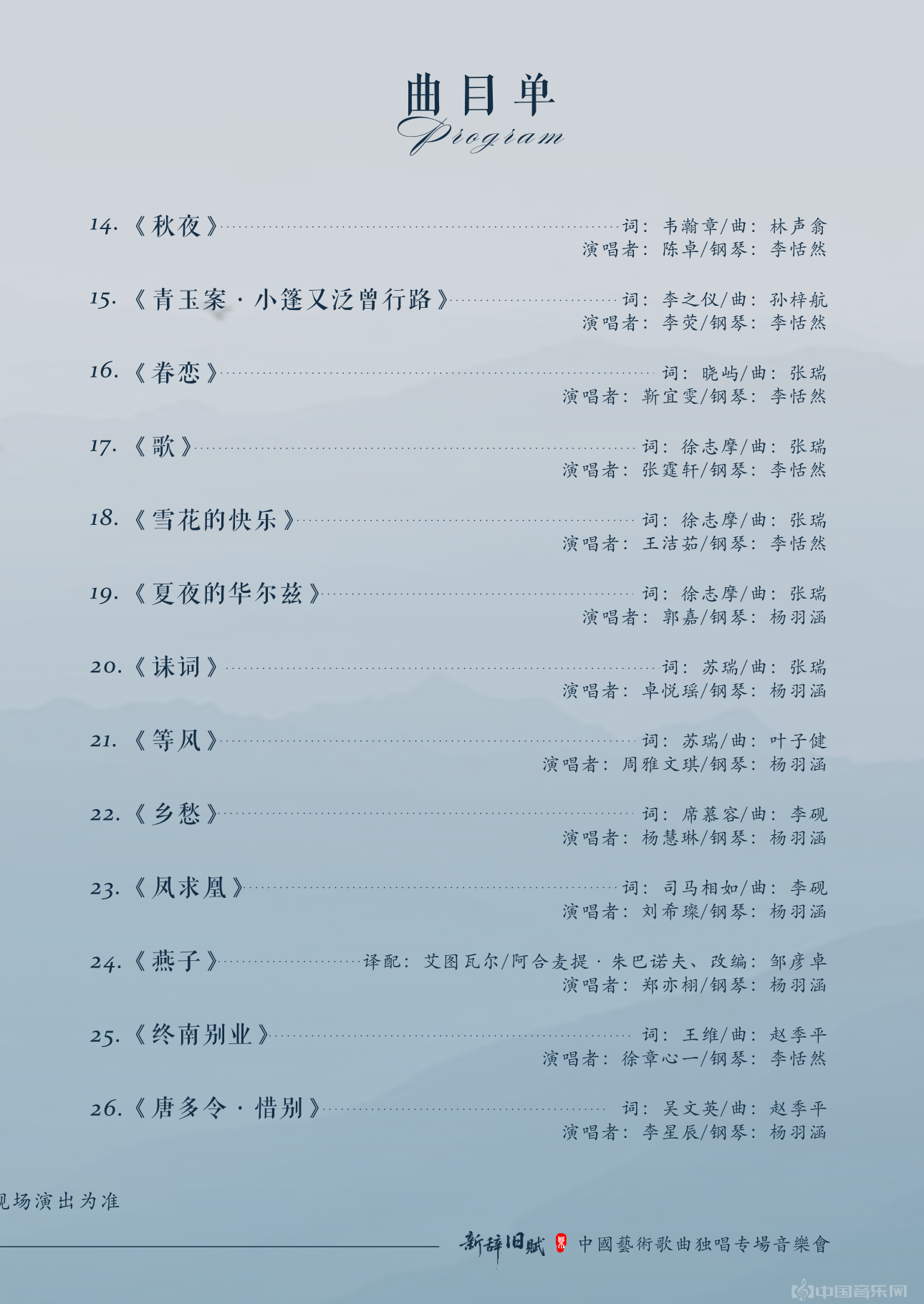 预告 | 新辞旧赋 —— 中国艺术歌曲独唱专场音乐会
